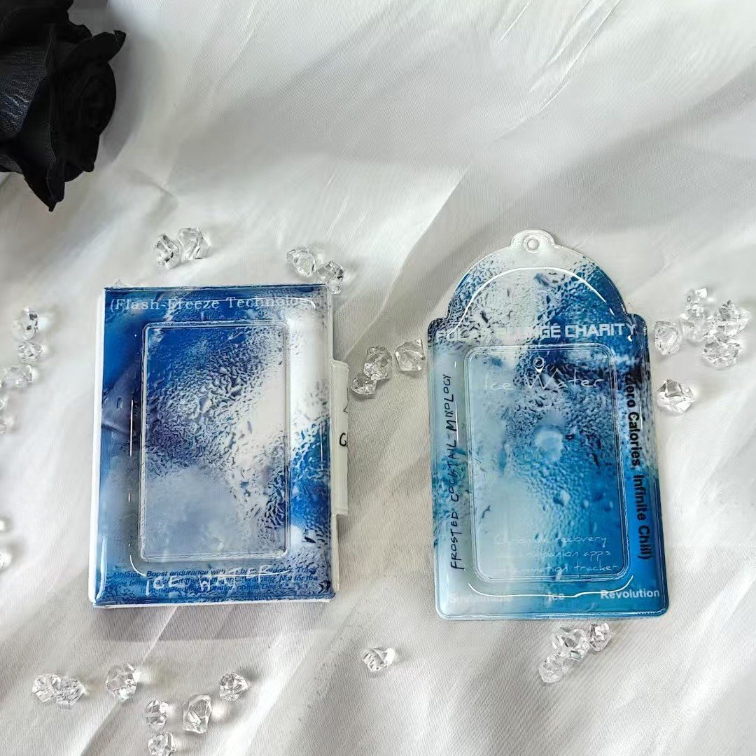 This ice – themed PVC set includes card holders and a binder, offering stylish frosted bright film details for storing and displaying 3 – inch cards or Polaroid photos.